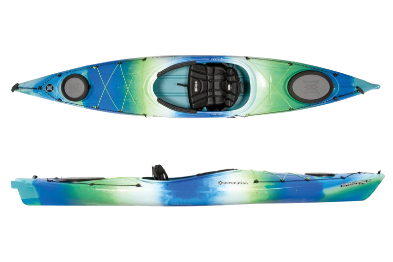 The Perception Carolina series of touring kayaks are perfect for beginner to intermediate paddlers who value comfort and stability. The Perception Carolina 12.0 kayak’s have category-leading comfort and versatility, while the incredible stability is perfect for new paddlers, while the experienced will appreciate its speed and agility.